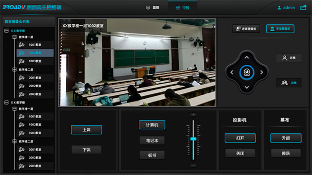 可对接不同品牌的中控、多媒体设备以及动环设备;支持RS232、RS485、I/O、IR、TCP、HTTP等多种形式的控制协议;教学环境远程控制管理,分层分类导览,控制操作与视频回显相结合;摄像头预置位管理,一键式电子监考预案调用。