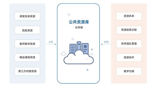 实现课堂实录的规模化管理和智能化应用,结合AI剪辑技术的精品课程在线创建,各类公共资源的统一接入管理,实现校本资源的共建共享。